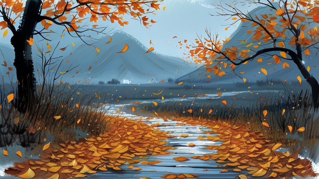 秋晨,桐叶在微风中轻轻飘落,如蝶舞般盘旋而下。寒蛩在夜色中低吟,声声如诉,时断时续。旅人独行于长安古道,满目萧瑟秋光,落叶铺就的小路蜿蜒向远方,在暮色中显得格外寂寥。