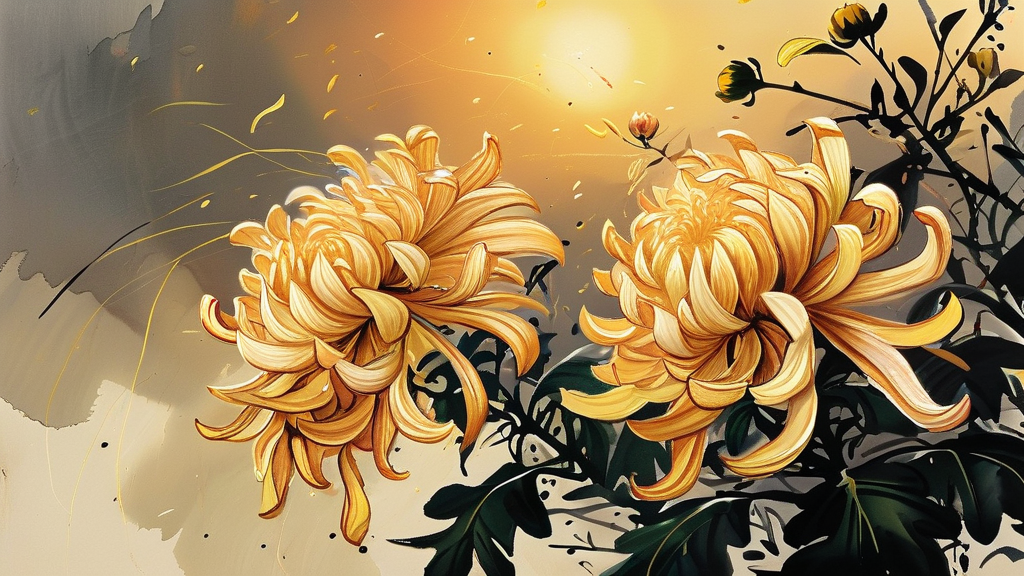 金秋的重阳时节,菊花在微凉的秋风中轻轻摇曳。金黄的花瓣层层叠叠,在斜阳下泛着温暖的光晕,却掩盖不住那抹淡淡的哀愁。花影婆娑间,仿佛有无数细长的愁绪在枝叶间缠绕,随着秋风越拉越长,直到消失在暮色深处。