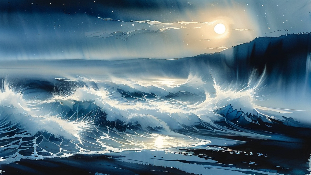 海风呼啸着掠过江面,吹散了薄雾,却吹不散那连绵的浪涛。月光如银,倾泻在波光粼粼的江水上,映出一片空明。江天一色,唯有那轮明月高悬,冷冷地俯瞰着这无边的空旷。